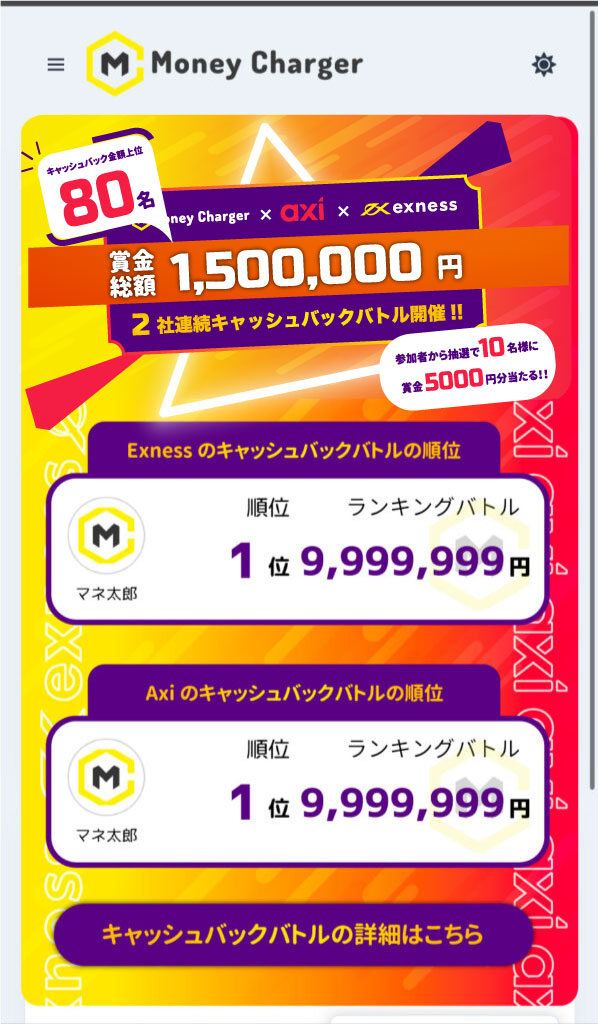 その海外FXキャッシュバックサイトのマネチャ(Money Charger)が、さらに魅力的なキャッシュバック大会を開始します。