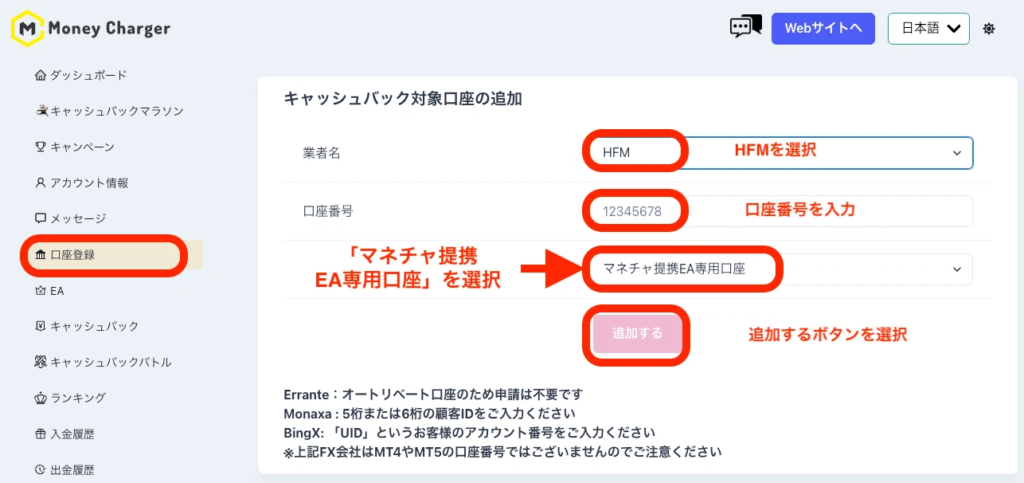 ※すでにマネチャ経由のHFMの口座を持っている場合でも必ず以下のURLから追加口座を開設してください😌
