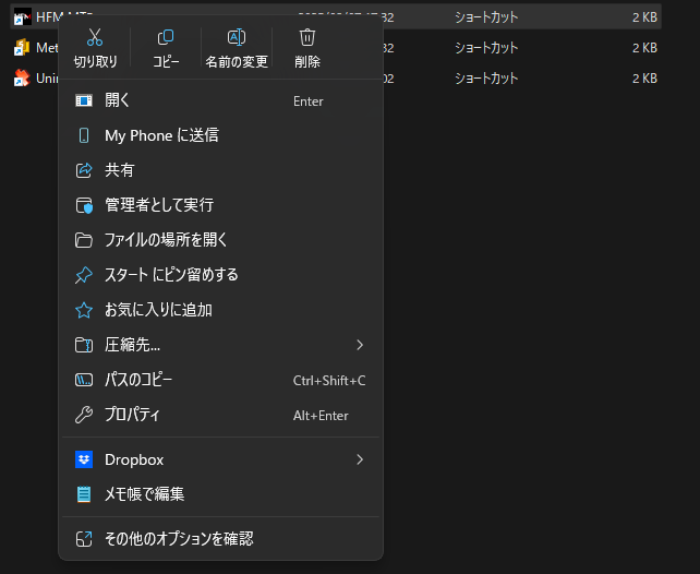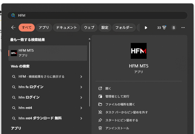 ②「HFM MT5」を再度右クリックして「ファイルの場所を開く」をクリック