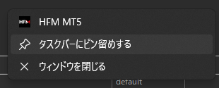 ⑥無事2つめのMT5が起動が確認できたらいつでも起動ができるよう、右クリックでタスクバーにピン止めをおこなうことをお勧めします。