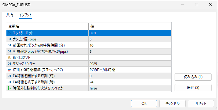 ※OMEGAの場合は事前にEURUSDの15分足のチャートを開いて、そこにドラッグ&ドロップしてください。