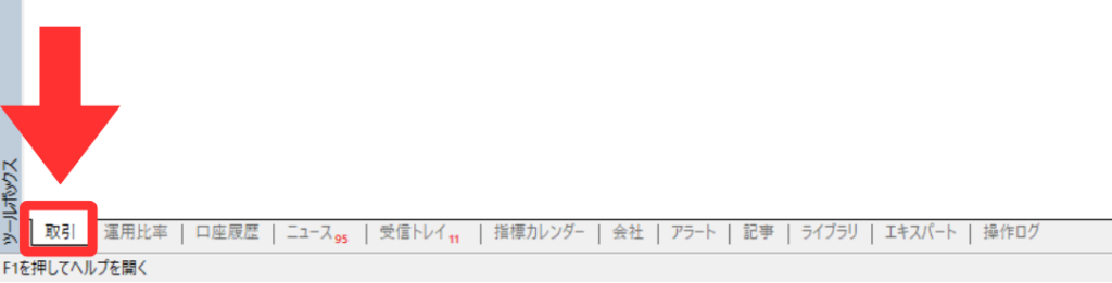 正常にログインできた場合は左下に「取引」のタブが追加されます。