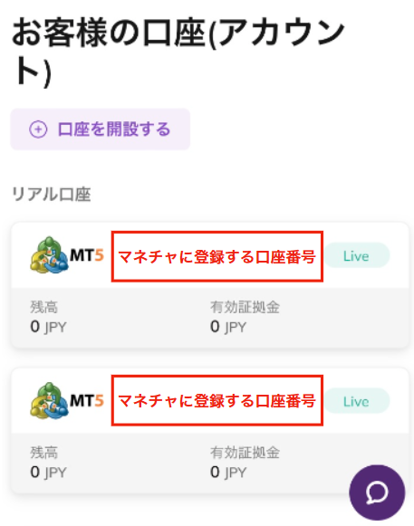 次にマネチャ(money charger)に登録する取引口座を追加開設します。