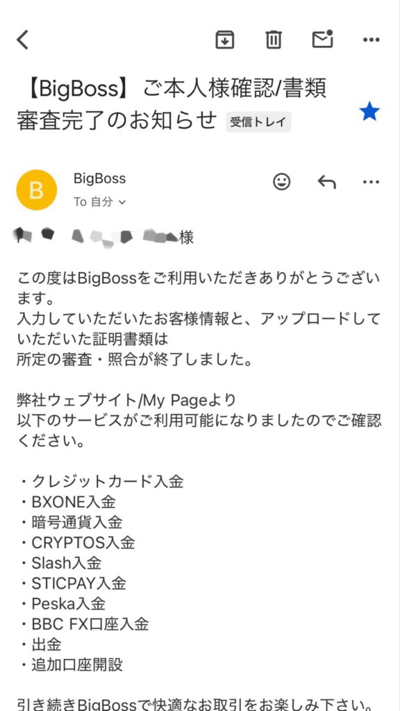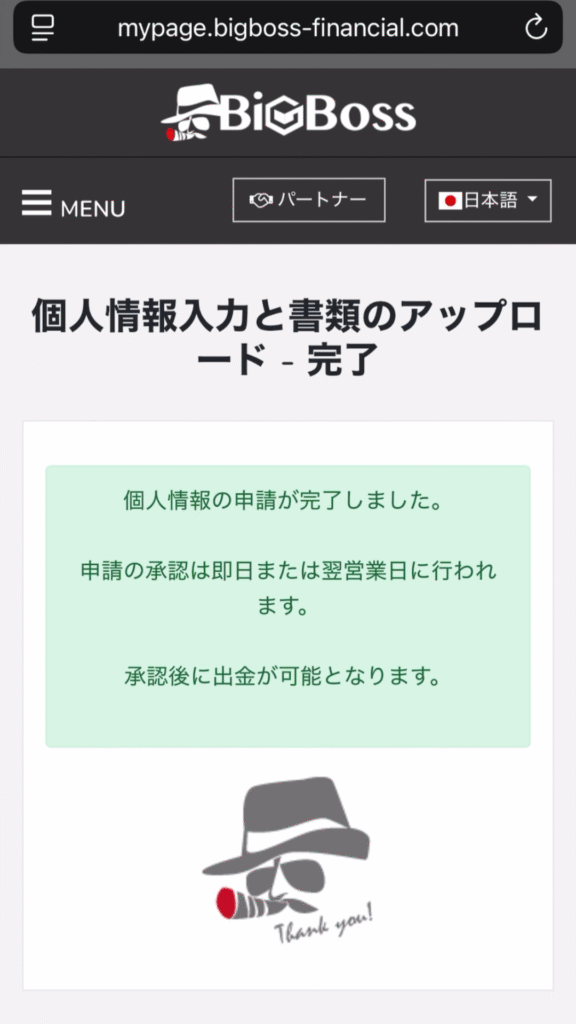 以上がBigBoss(ビッグボス)の新規口座開設手順のスマホ画像付きの図解解説になります。