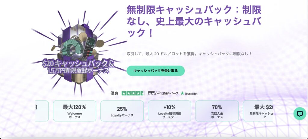 ボーナス条件の総合評価は海外FXボーナス比較ランキングをご確認ください。