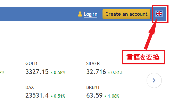たまに、MQL5が英語で表示されてしまうことがあります。その場合、サイトの上部・右上にある国旗マークをクリックして日本語を選択すれば日本語サイトに切り替わります。