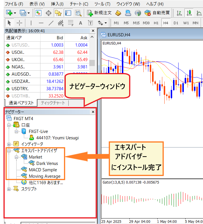 (詳しいインストール方法、EAの稼働方法はこちらからご覧になれます。)
