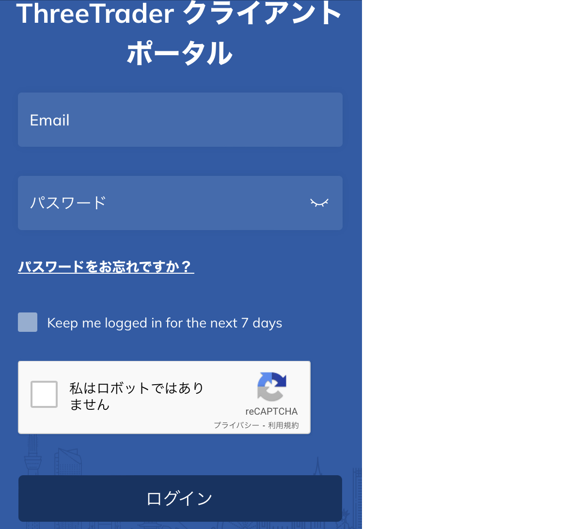 メール認証が完了したら、登録したメールアドレスとパスワードでFXGTのマイページ(会員ページ)にログインします。
