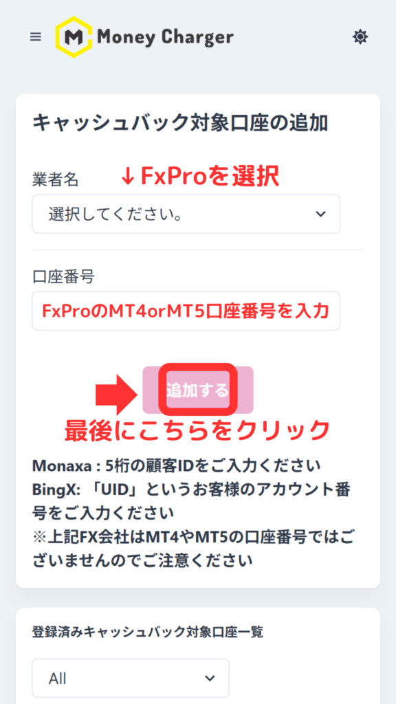 ※こちらのページはFxPro→MoneyChargerの順に登録した方向けのものであり、