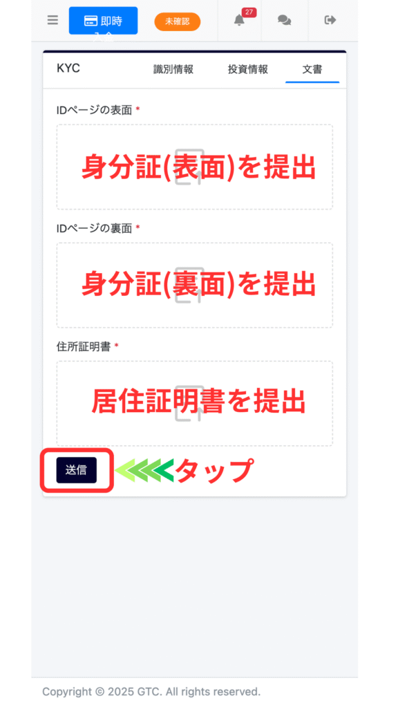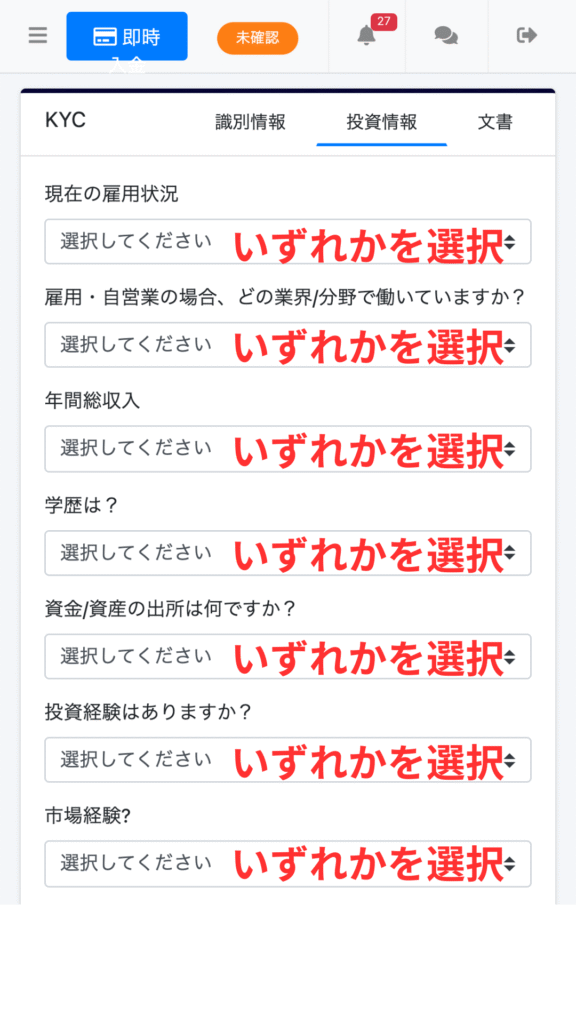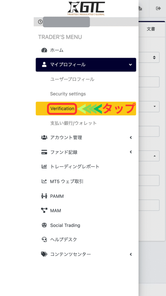 マイページの左ペインにある[Verification]をタップし、本人確認に進みます。
