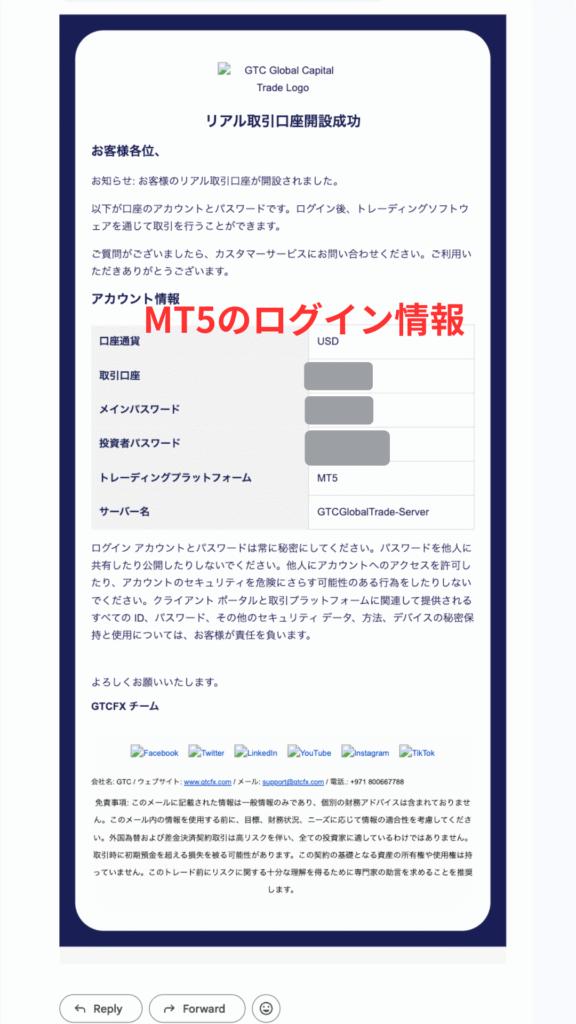 ⑤口座開設完了のメールを確認し、取引口座へログイン