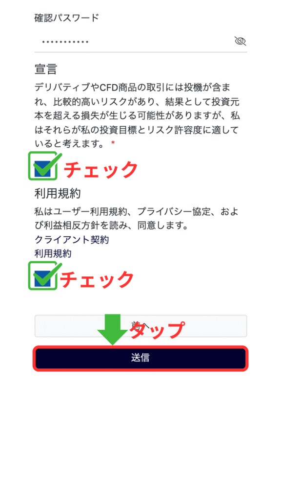 下記の通り 2箇所にチェックを入れて、送信をタップします。