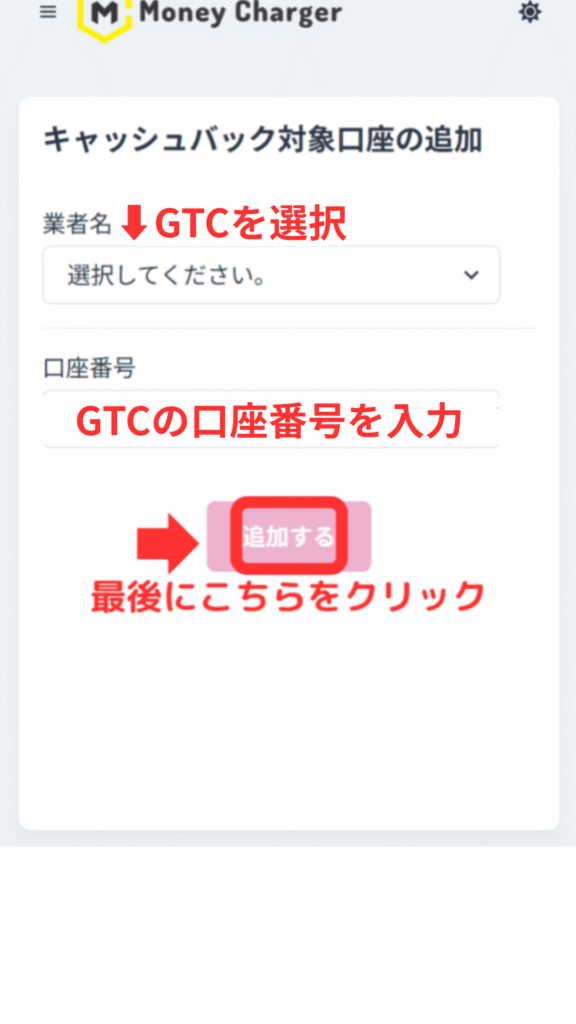 Step2:MoneyChargerのマイページより、FX口座登録申請をおこなう