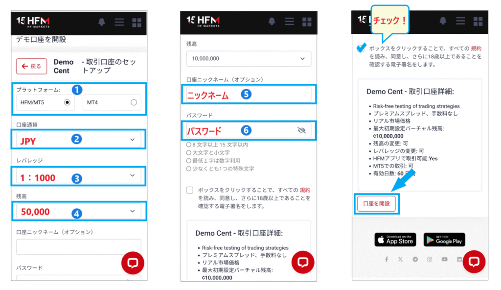 HFMデモ口座開設の手順・やり方(スマホ版)