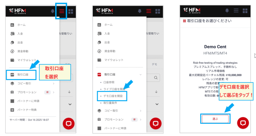 - myHF(会員ページ)にログインしてデモ口座を開設