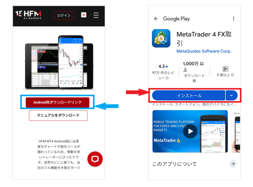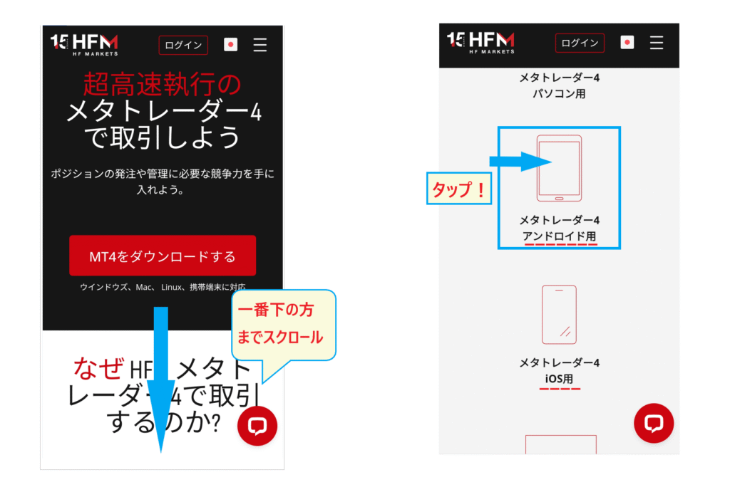 さて、さっそくHFMのMT4をスマホに無料ダウンロード、インストールする方法を解説していきます。