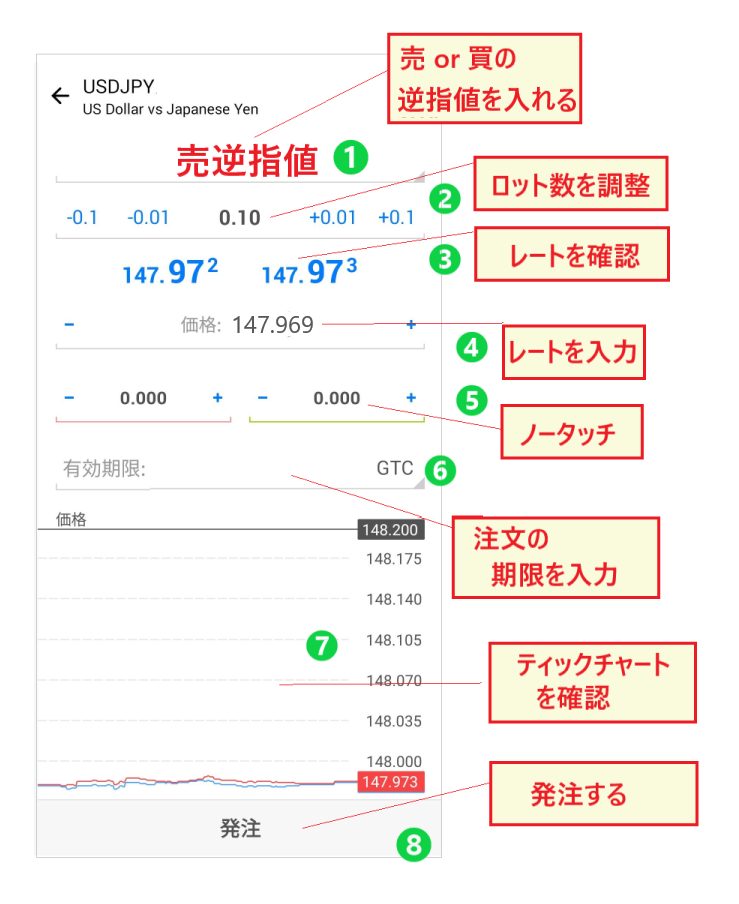 1. 買逆指値または売逆指値を選択する