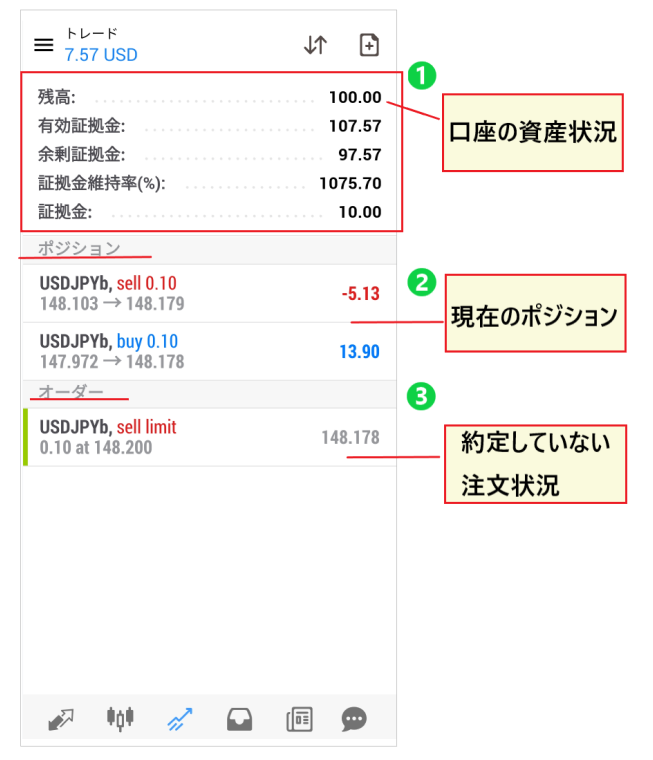 資産状況、ポジション、注文状況の見方