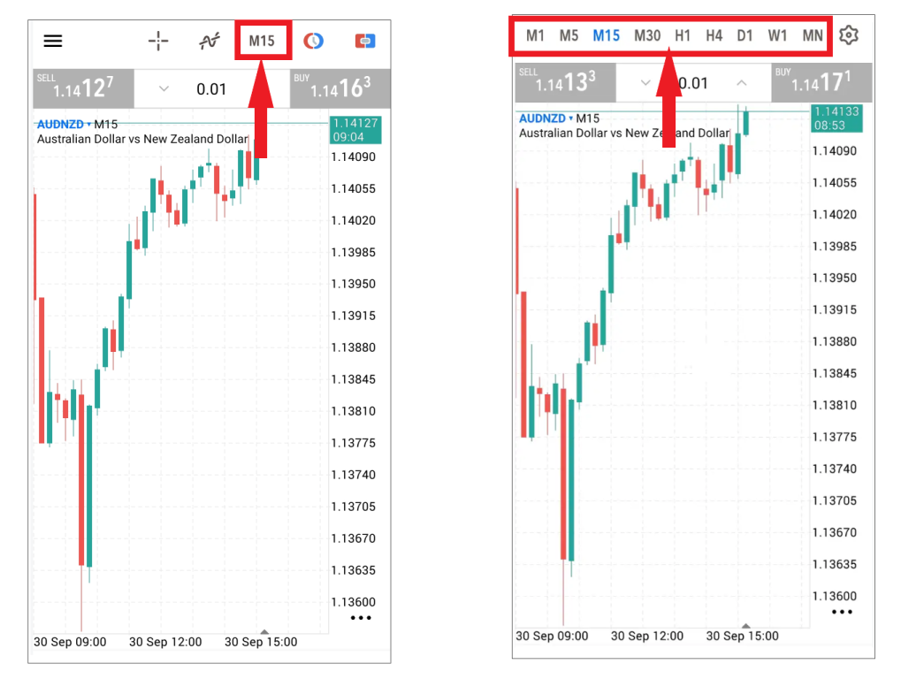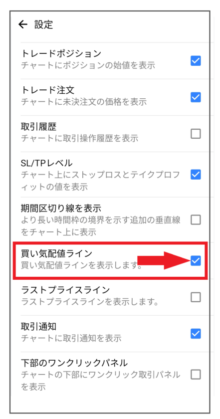 売買したい箇所にラインを定めたら、矢印をタップしてください。