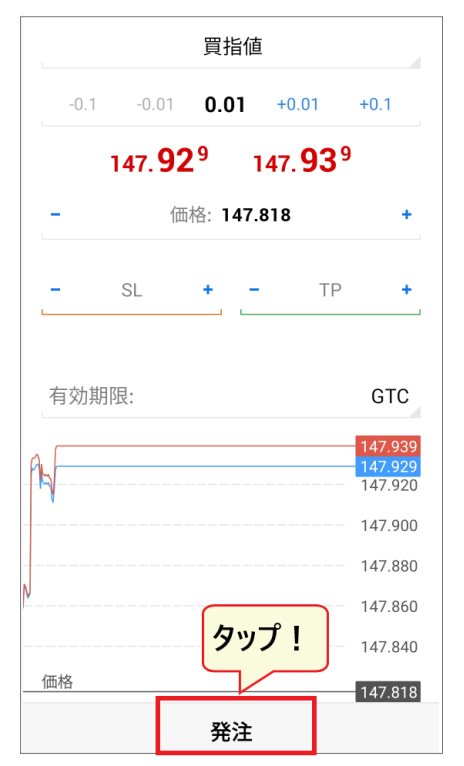 注文画面が出てくるので、レートを確認して「発注ボタン」をタップします。