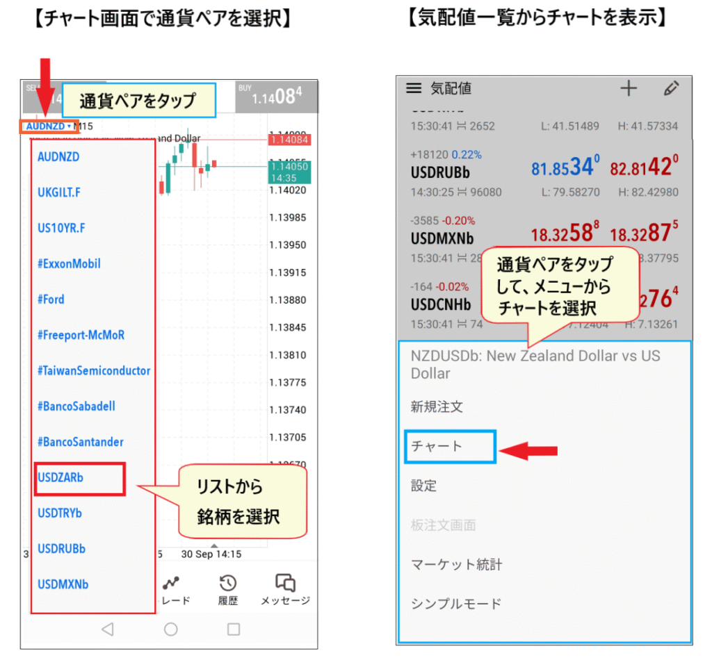 実をいうと、MT4とMT5のPC版はそこまで大きな違いはないのですが、スマホアプリではMT5の方が数段アップグレードしていることが特徴です。小さな画面でもトレードに役に立つさまざま機能が搭載。