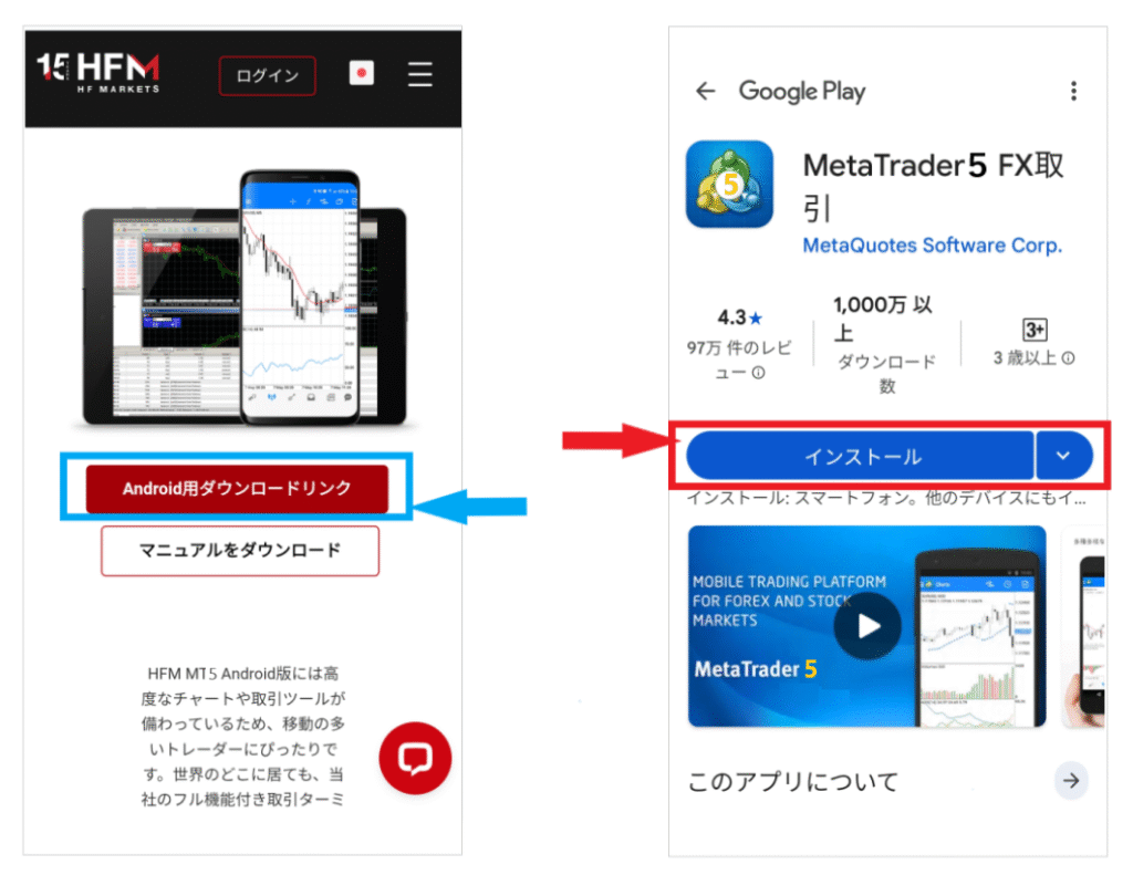 それでは、さっそくHFMのMT5をスマホにダウンロードしてみましょう。