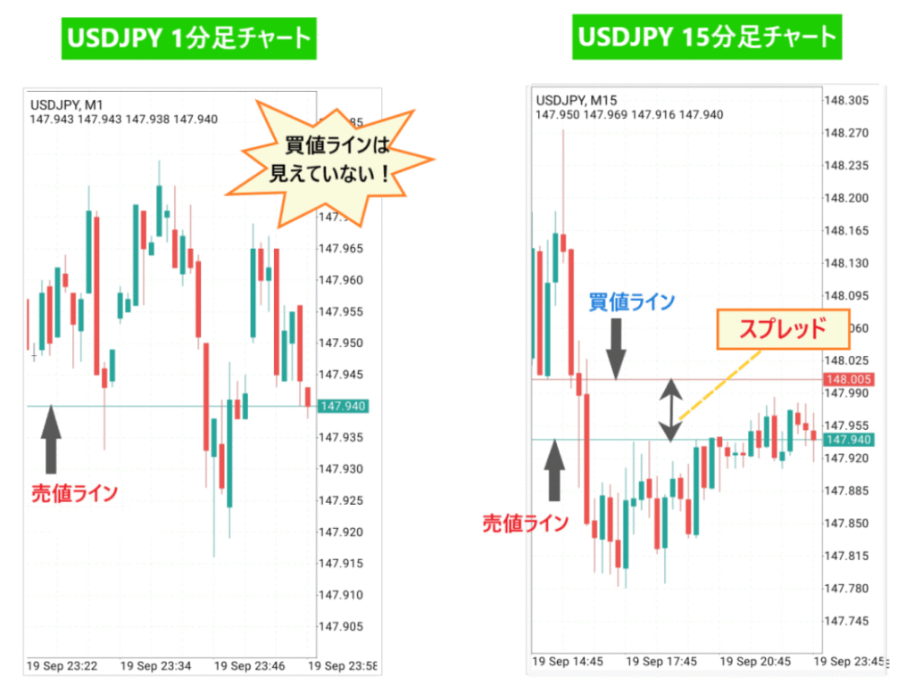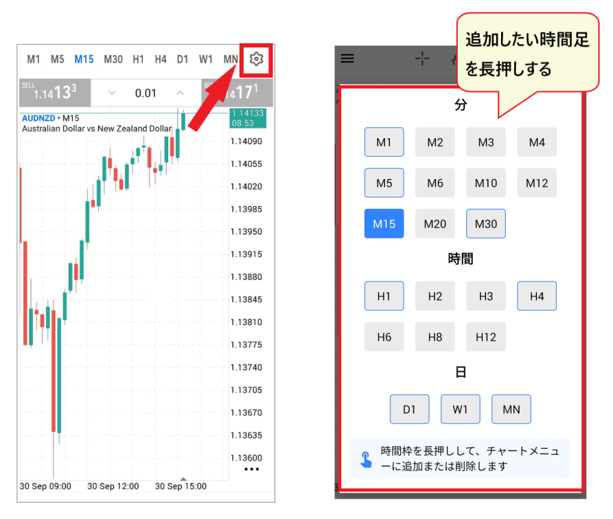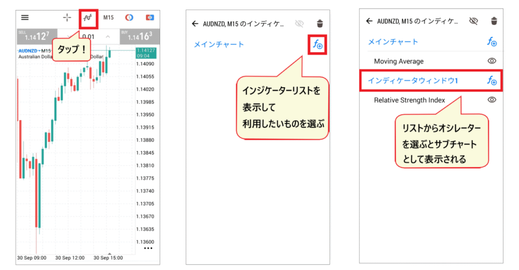 スマホアプリは、あくまでも補助的なツールとして考えた方がよいです。カスタムインジケーターや日本時間表記、売買シグナルなど自由に追加できません。