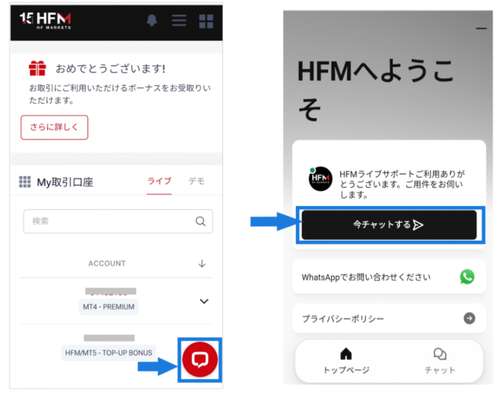 どうしても自分で解決できない、原因がわからない、となった時は迷わずに即カスタマーサポートに相談してみましょう。HFMのカスタマーサポートは平日の営業時間内(日本時間9時~24時)であれば、ライブチャットで担当とダイレクトに話しができることが多いです。とくに日中の時間であればつながりやすいので、問い合わせてみてください。