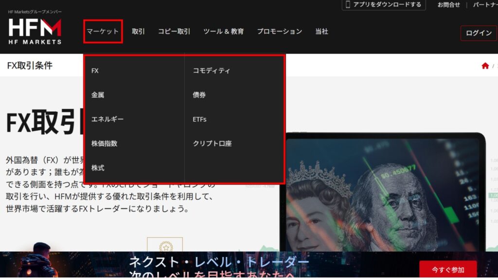 HFMでは1,200銘柄を超える豊富な取引商品を提供しており、FX通貨ペアからCFD商品まで幅広いラインナップが魅力です。