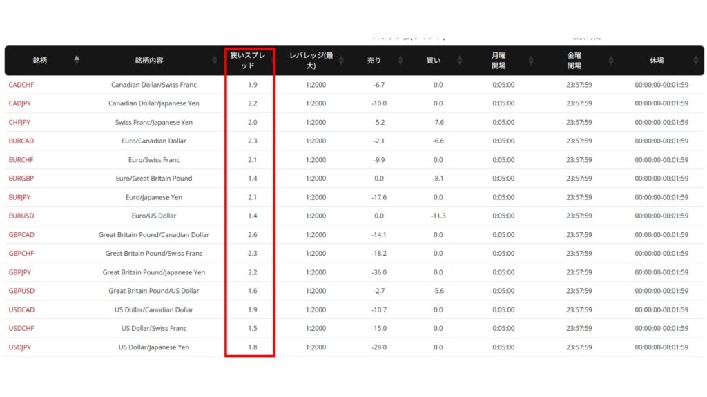 公式ページは参考値であり、実際の取引中に提示されるスプレッドは市場状況によって上下しますが、おおよその水準を把握するには十分役立ちます。