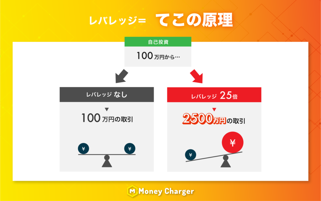 FX取引において「レバレッジ」とは、証拠金を担保にして、その何倍もの資金を動かせる仕組みのことです。