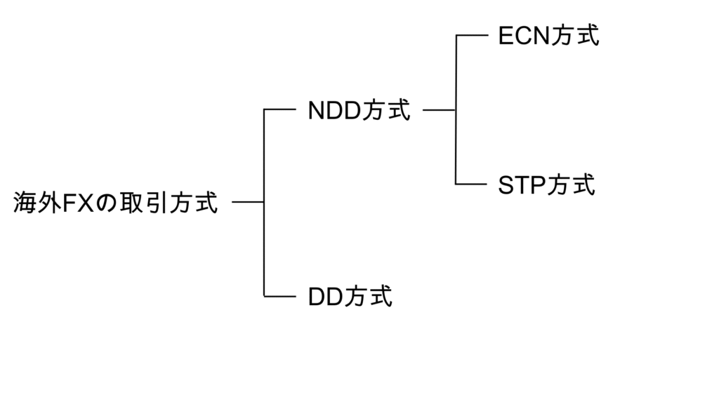 海外FX業者の取引方式は大きく分けて、NDD方式とDD方式の2種類があります。