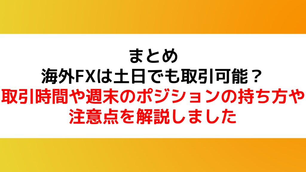まとめ|海外FXは土日でも取引可能?取引時間や週末のポジションの持ち方、注意点を解説しました