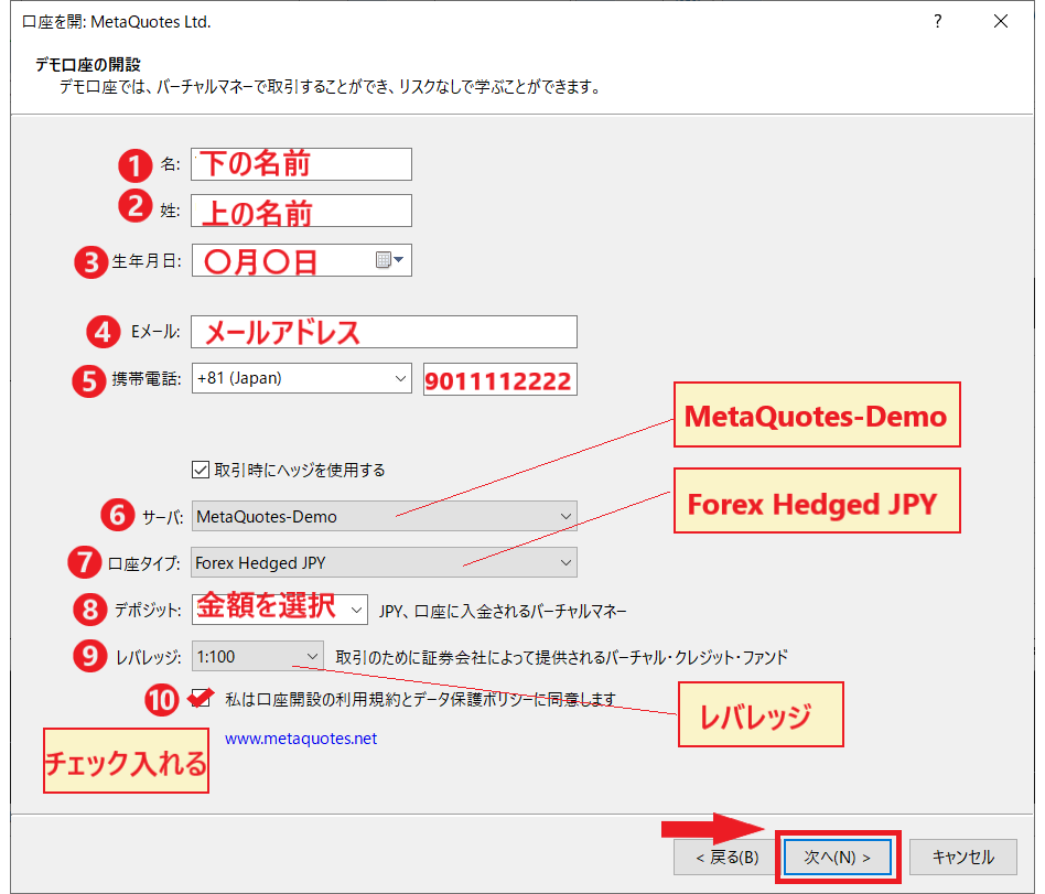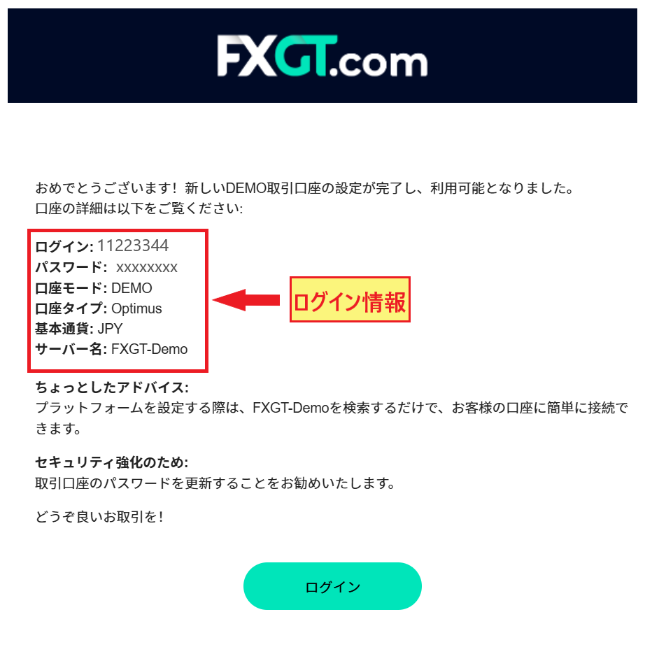 デモ口座登録に必要な情報は、「ログインID」「パスワード」「サーバー名」の3つです。