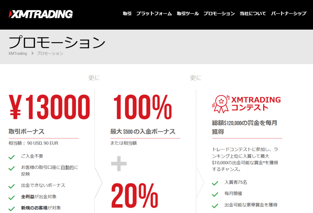 | XMTrading | ボーナス | 無期限※ | 3種類 | 1000倍 | 設定OK | 3種類 | 不可 |