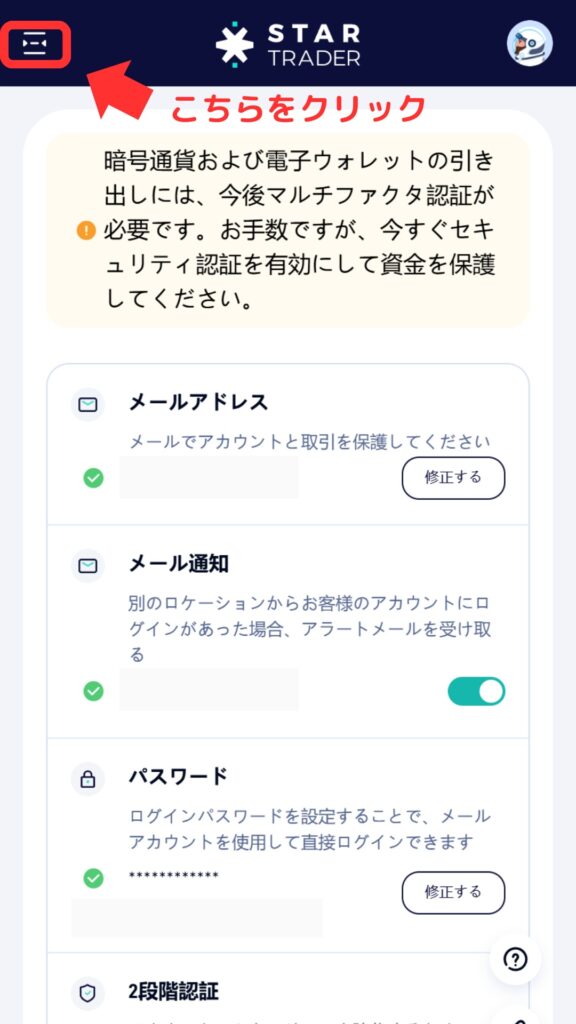 (紹介リンクを踏まずにStarTraderの登録をされた場合にもこちらの手順が必要です)