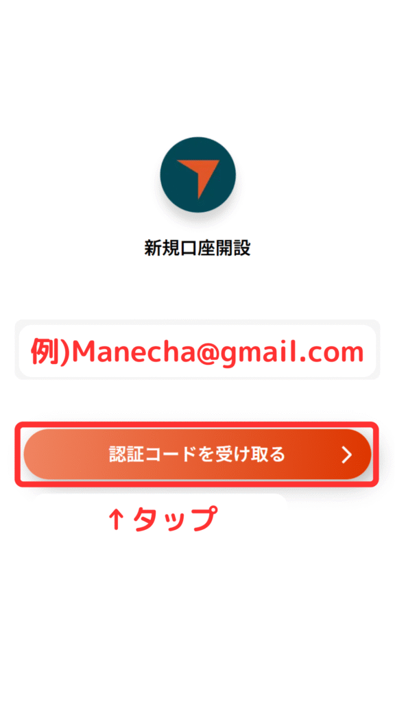 登録メールアドレスを入力し、「認証コードを受け取る」をタップします。