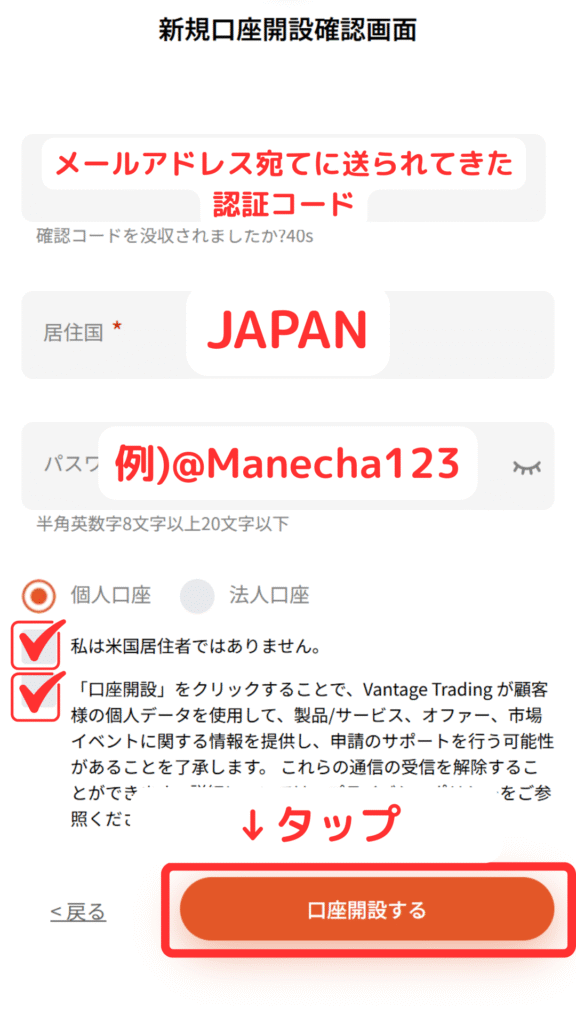 【図解解説】Vantage Trading口座開設手順(新規登録)【最新スマホ画像付きで簡単アカウント作成】(ヴァンテージトレーディング)