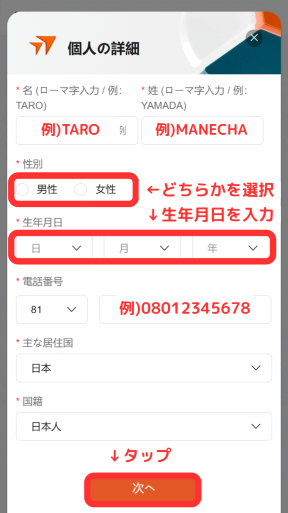 ③次に個人情報を入力します。