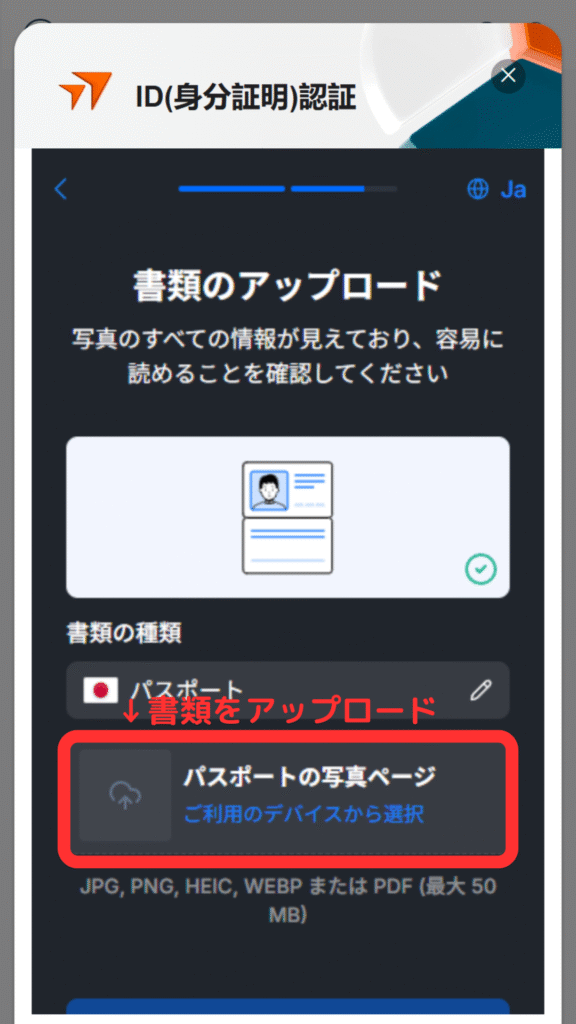 ⑥本人確認書類をアップロード