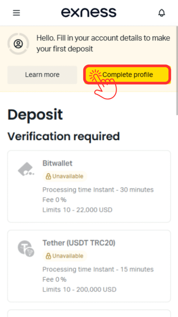 「Complete profile」をタップします。