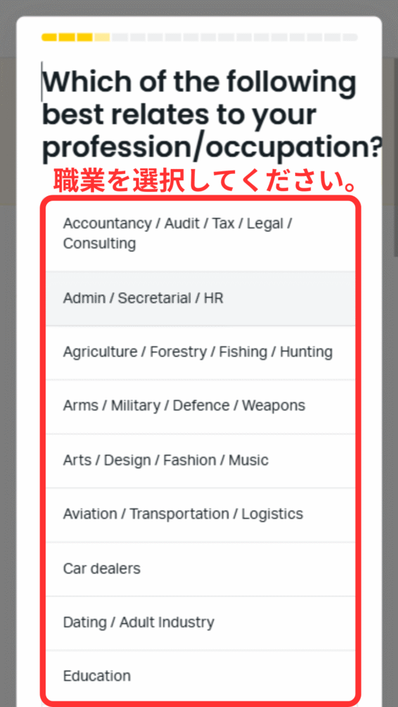 ⑫職業を選択してください。