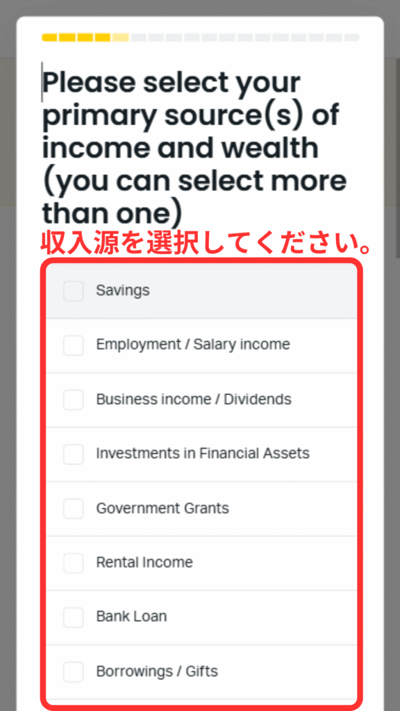 ⑬主な収入源を選択します。