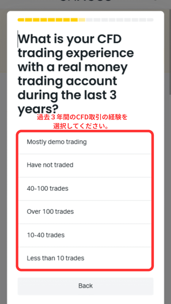 ⑰過去3年間のCFD取引の経験を選択してください。