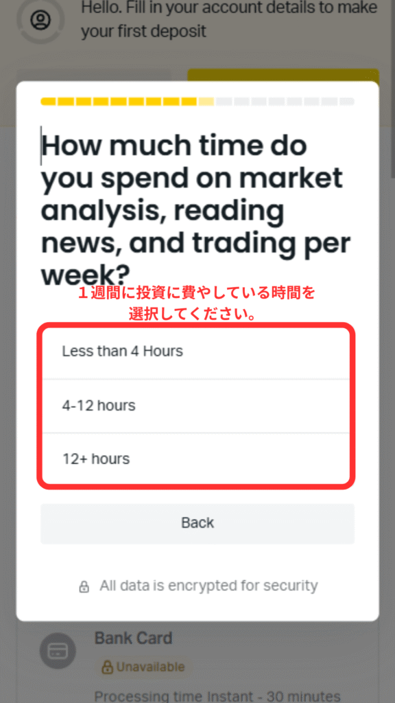 ⑯Exnessに年収の何パーセントを投資する予定か選択してください。