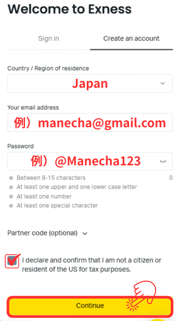 【図解解説】Exness口座開設手順(新規登録)【最新スマホ画像付きで簡単アカウント作成】(エクスネス)
