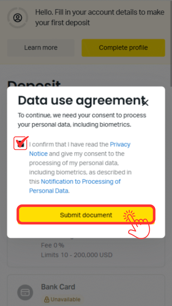 再度マイページから「Complete profile」をタップします。
