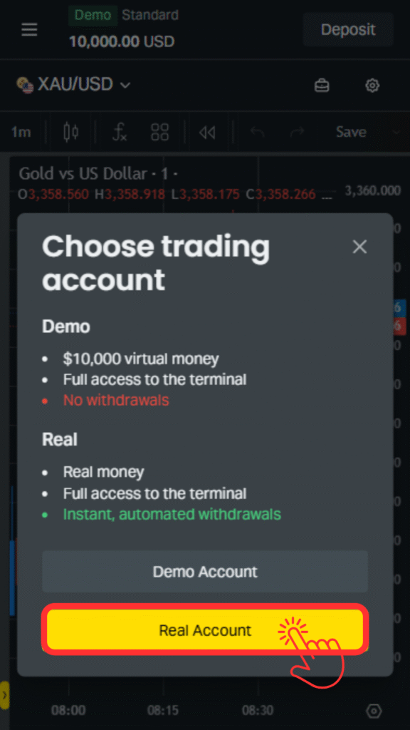 ④「Real Account」をタップします。