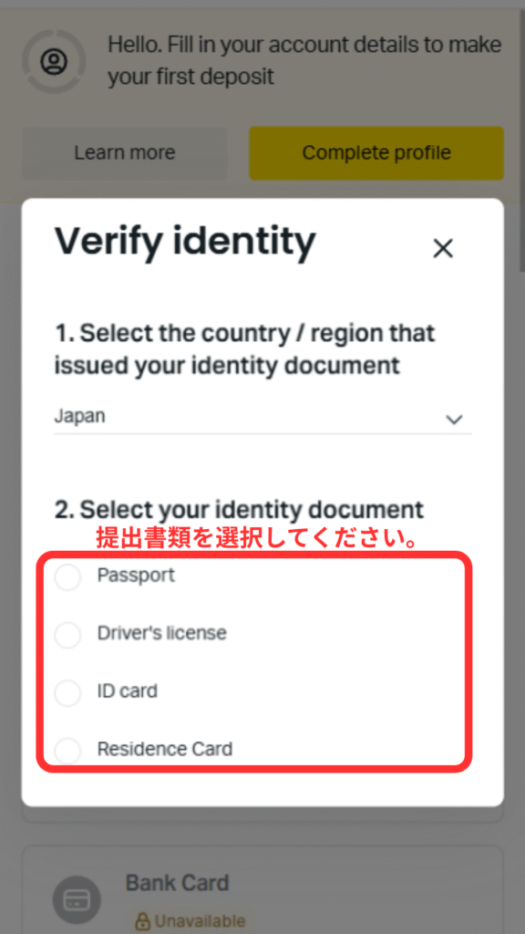 ㉛提出する身分証をタップしてください。