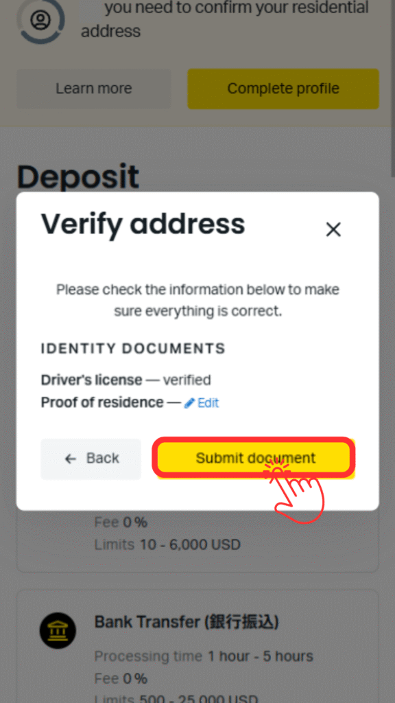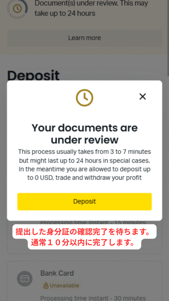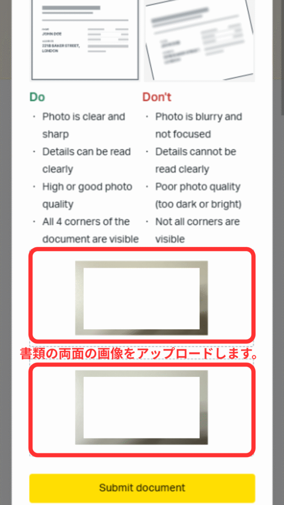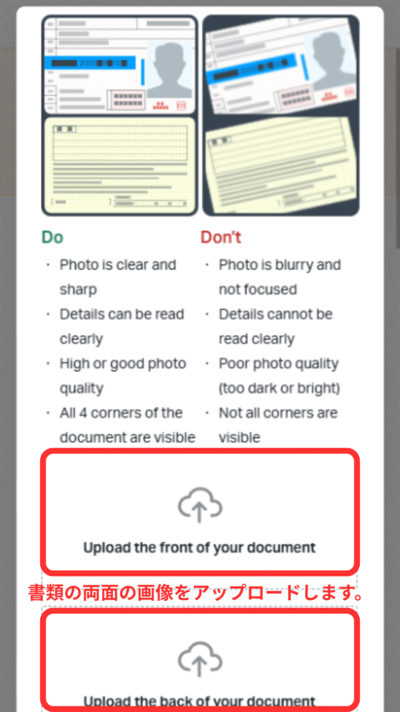 ㉙身分証明書を提出します。「Uploded documents」をタップしてください。